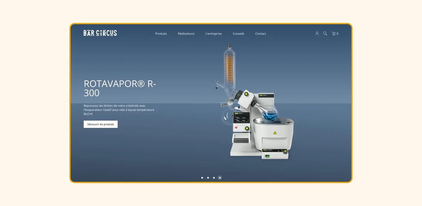 Le design du site a été pensé pour refléter l'identité de Bar Circus : professionnel, moderne et axé sur la qualité. Les choix graphiques mettent en avant les produits grâce à de grandes images de haute qualité et une typographie épurée. La navigation a été optimisée pour permettre aux utilisateurs de trouver rapidement les informations ou produits recherchés, avec des filtres et des catégories clairement définis.