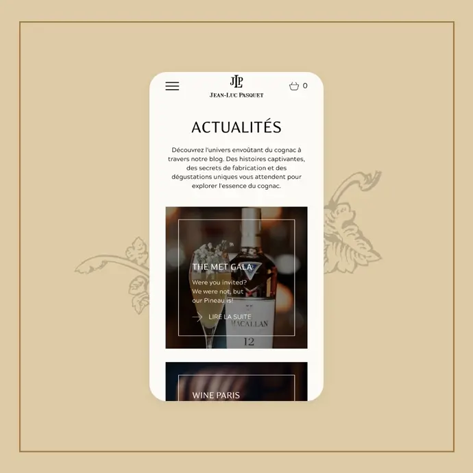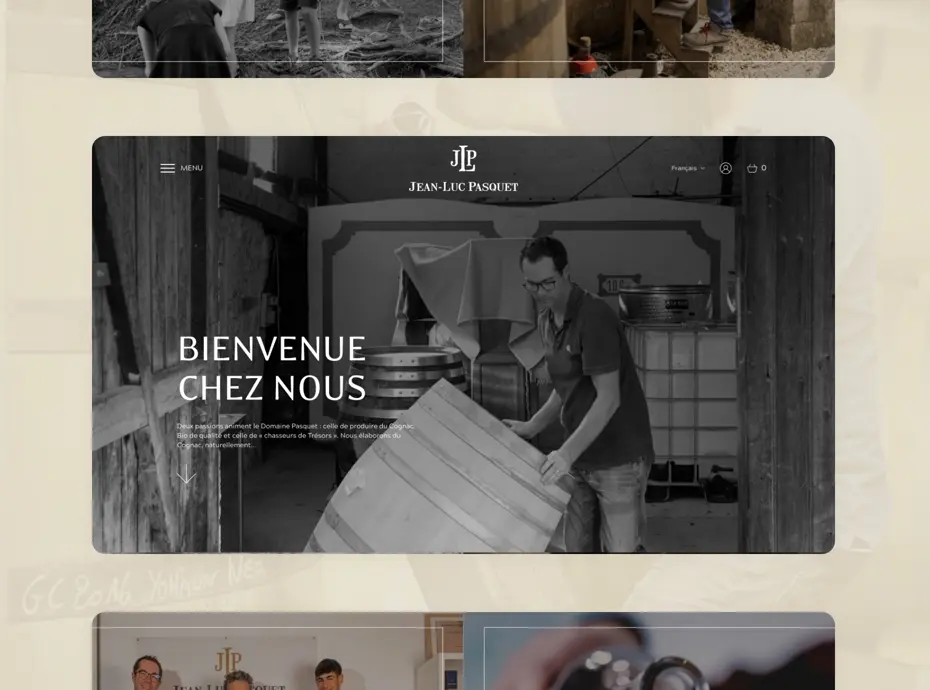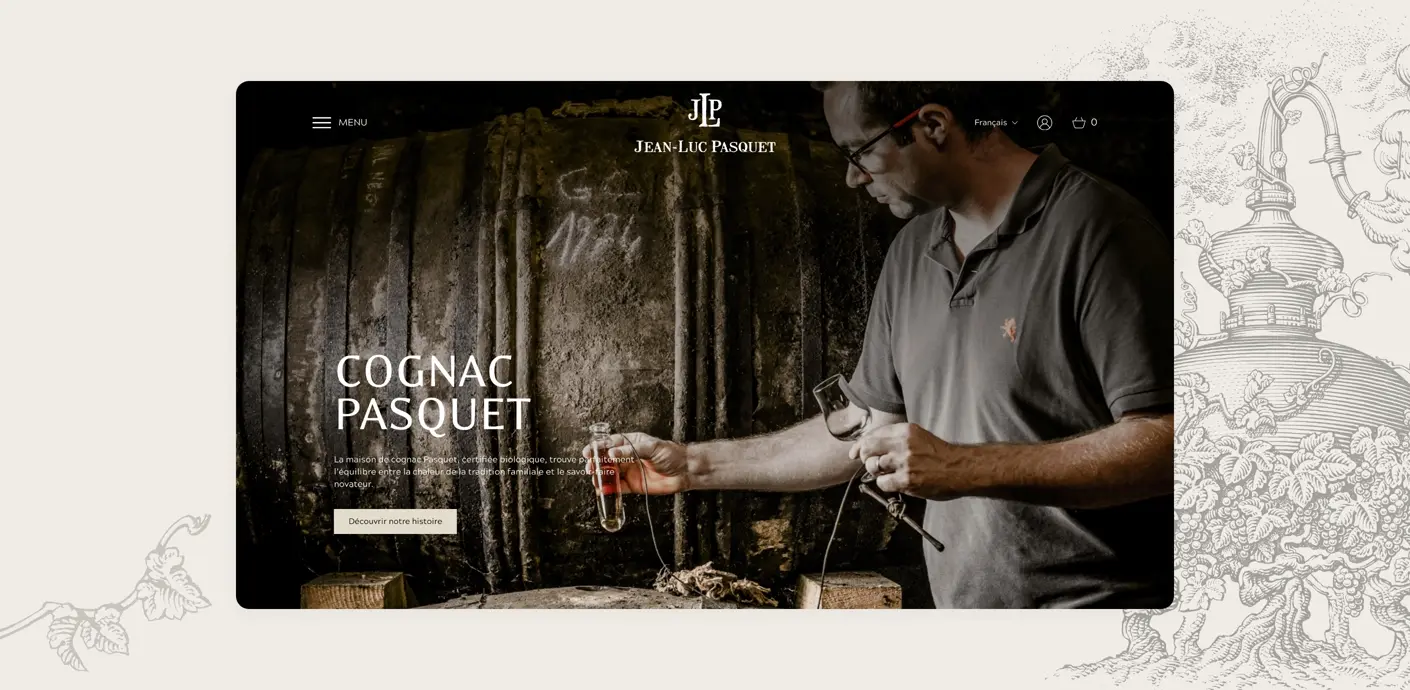 Dès le premier écran, le visiteur doit ressentir l’élégance et l’authenticité de Cognac Pasquet. Nous avons opté pour :- Un design épuré et raffiné avec des couleurs sobres et des typographies élégantes, mettant en avant le savoir-faire artisanal.