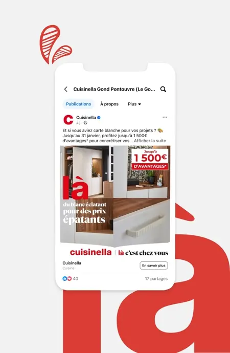 Pour accompagner l'ouverture de son nouveau point de vente à Gond- Pontouvre, Cuisinella a sollicité notre expertise en stratégie digitale avec les objectifs suivants :